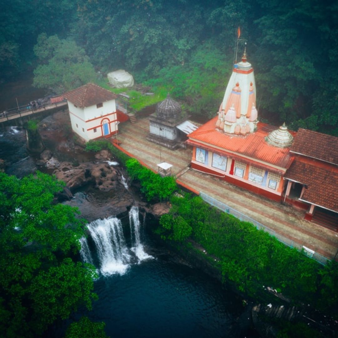 Especially during the monsoon, a natural waterfall near the shrine sets a stunning and holy scene.